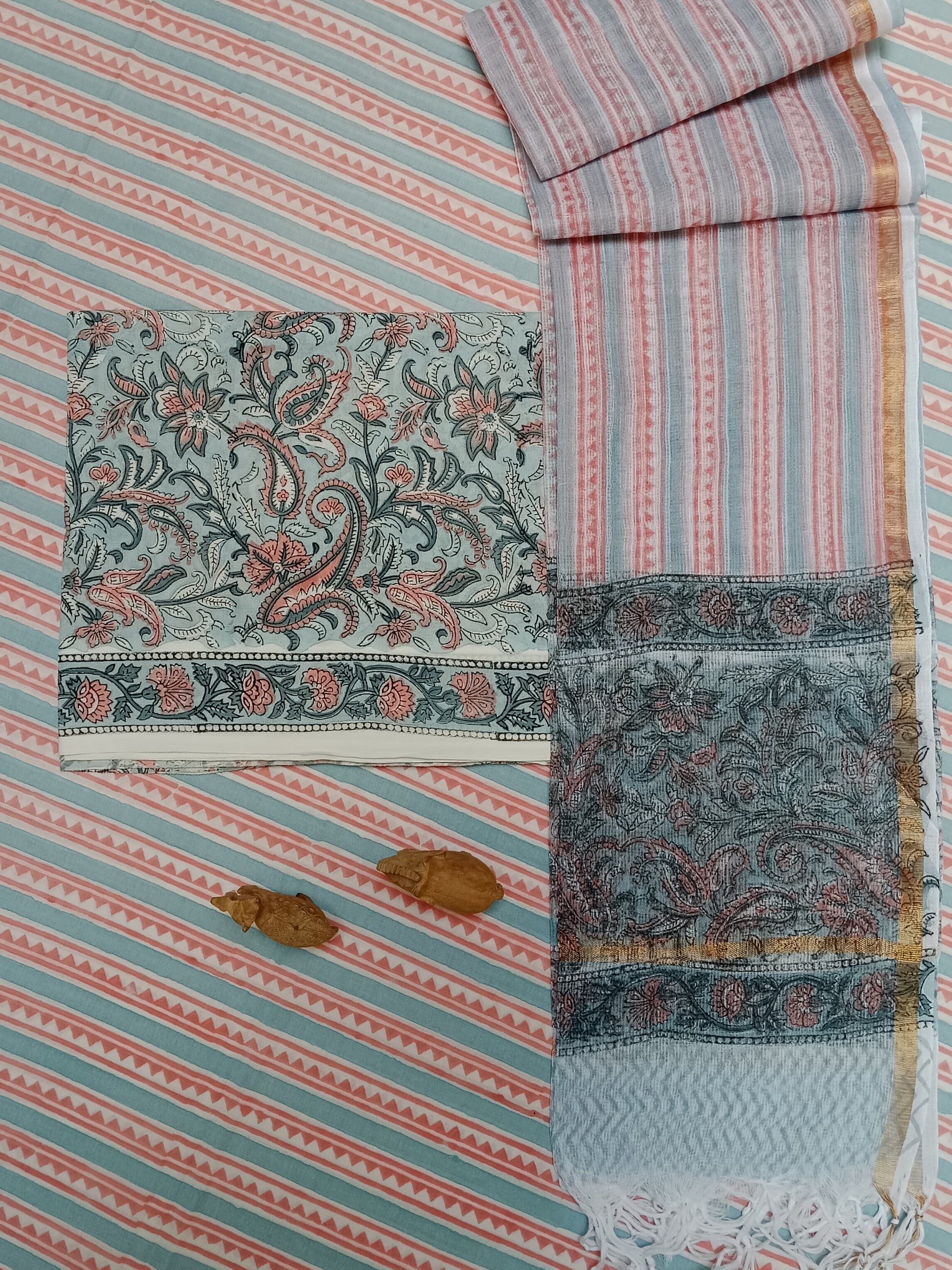Designer Handblock printed cotton suit with kota doriya dupatta