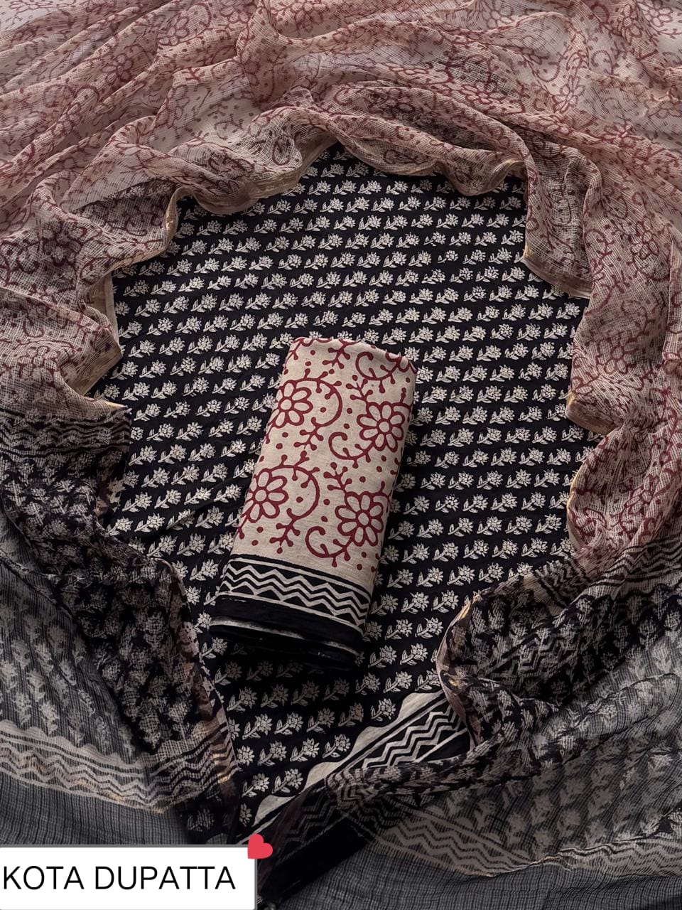 Designer Handblock printed cotton suit with kota doriya dupatta