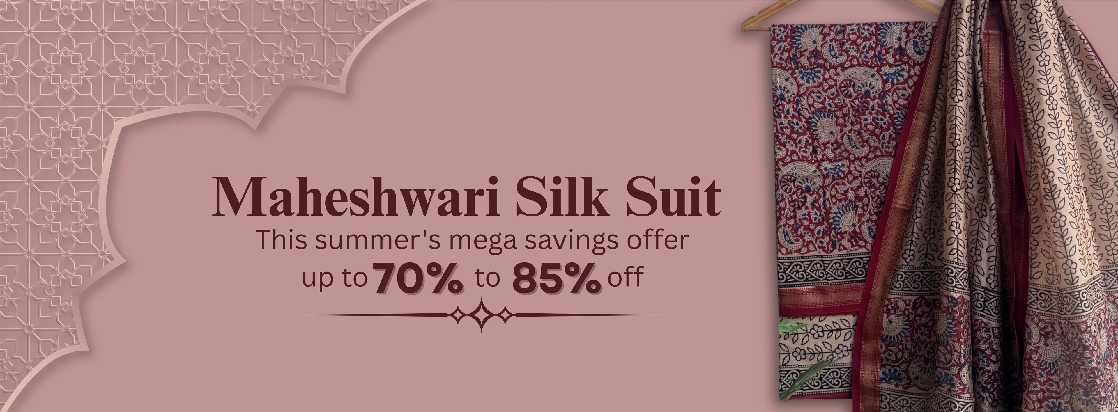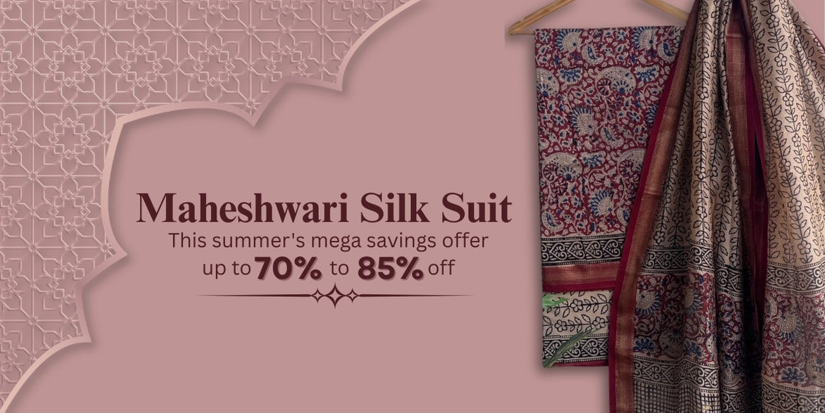 Hand block printed Maheswari silk suit
