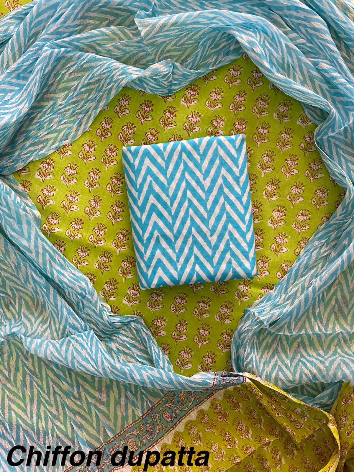 Traditional cotton suit with chiffon dupatta